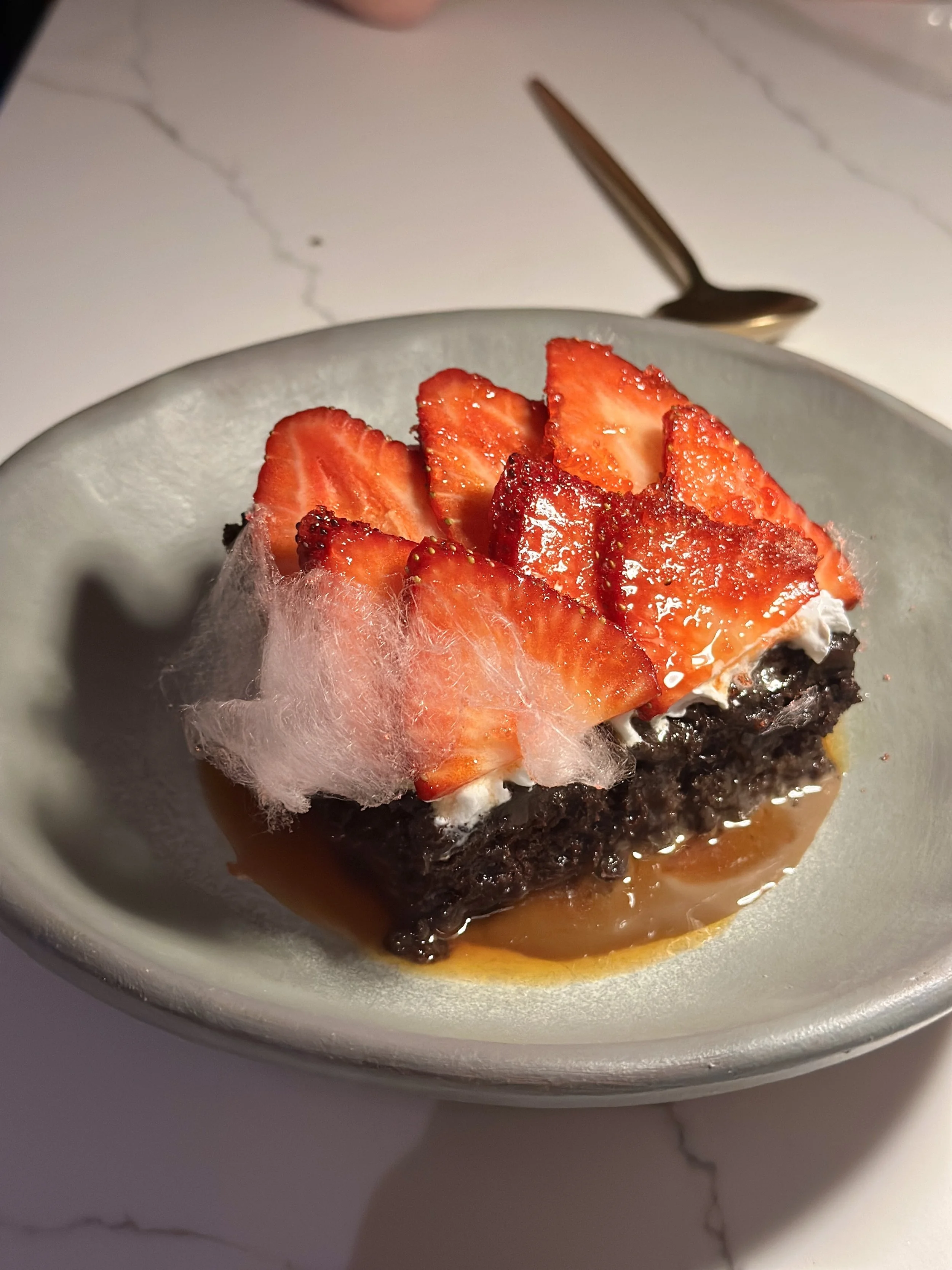 To top it all off, the night ended on a sweet and spectacular note with the Chocolate Tres Leches Cake. Not only was it decadent and rich, but they also put on a mini show when serving it! I believe it was rum they lit on fire, pouring it over the cotton candy and cake for a dramatic and unforgettable presentation. It was the perfect grand finale to an incredible evening!