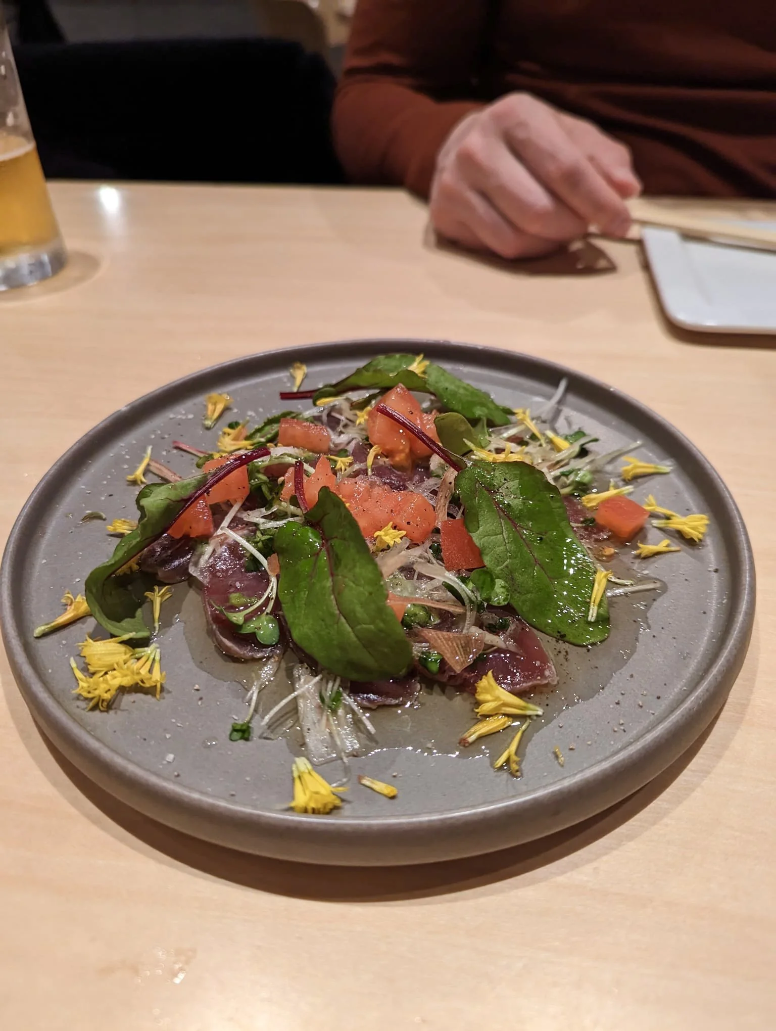 There was this harmony between the flavors: the freshness of the ingredients, the warmth of the seasonings, and the slight sweetness of my umeshu all played off one another in a way that made every bite feel intentional. You could tell the chef cared about both taste and balance, not just presentation.