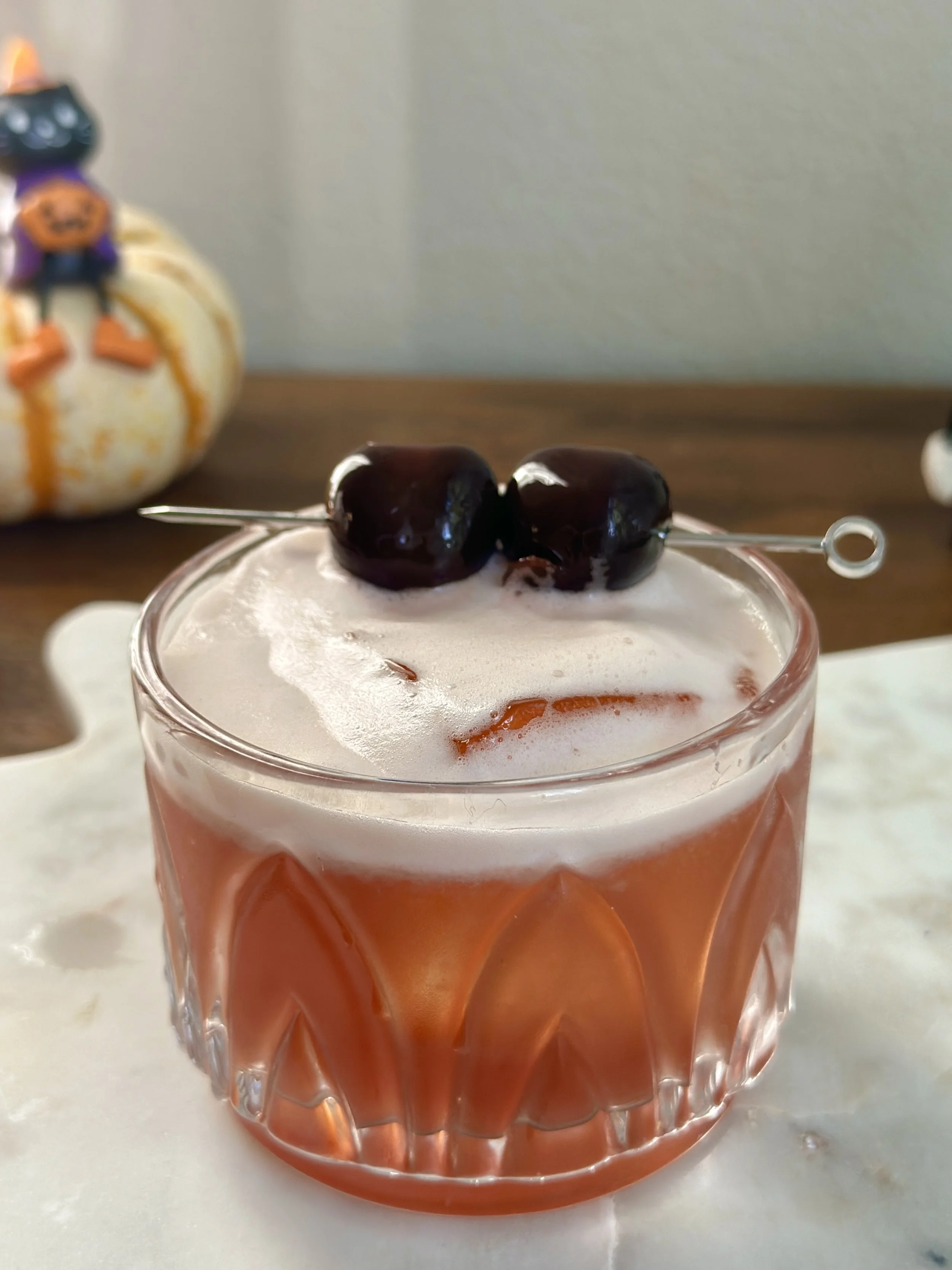 Garnish it with the leftover cherries from the cherry-infused brandy.