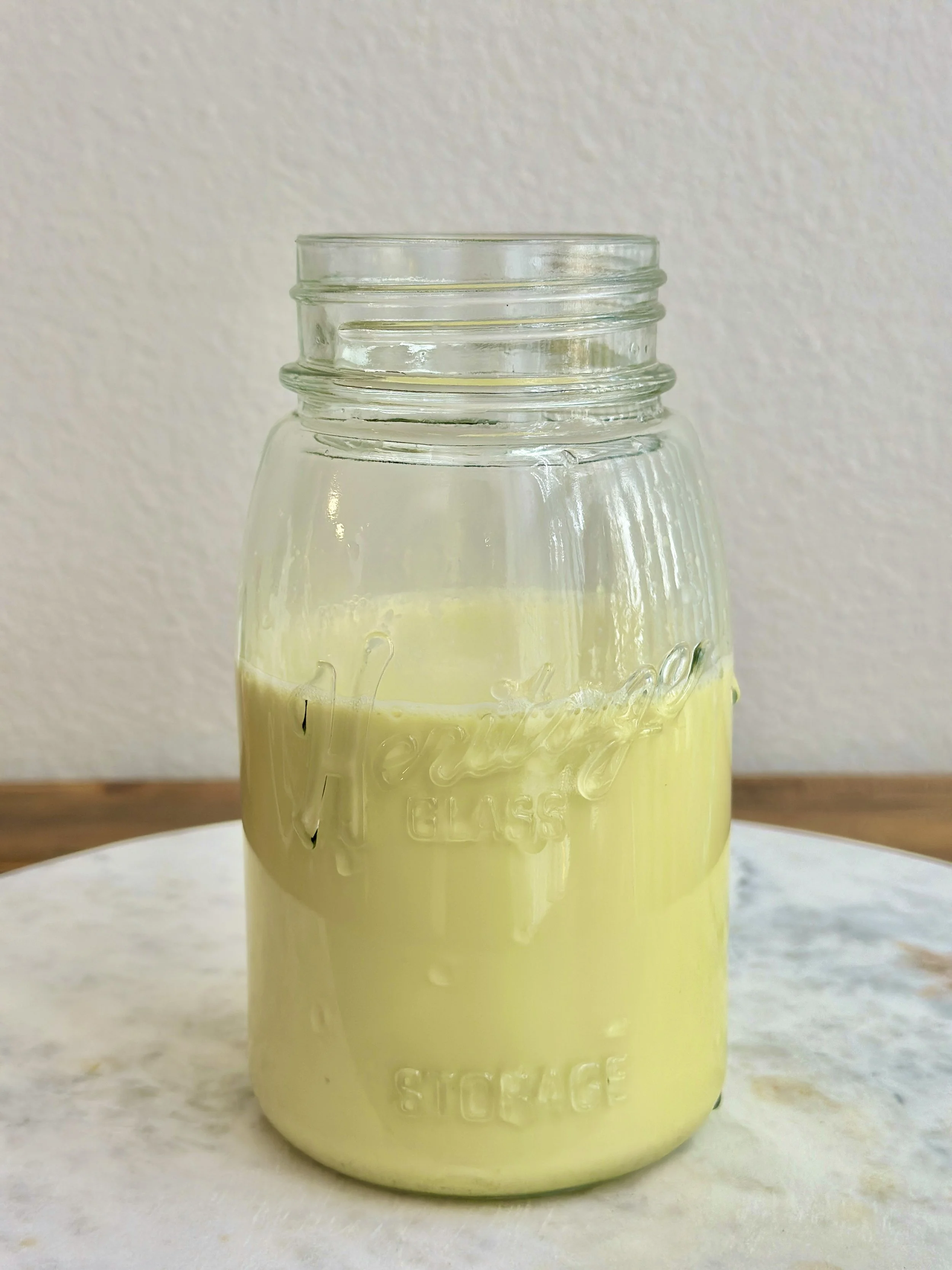 Soak the pistachios in 3 cups of water overnight in a container to help them blend more easily. I used a glass jar as seen in the photo.